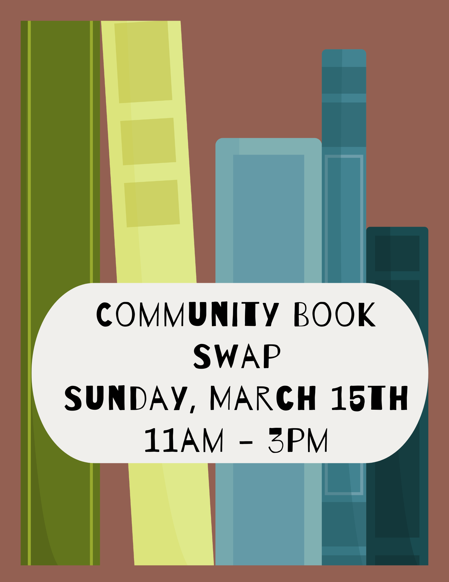 Bring books, but more importantly: take books! Novels, craft books, kids books, and more. Join us for a this community event. All books are free but donations for Seacoast Reads are kindly accepted.