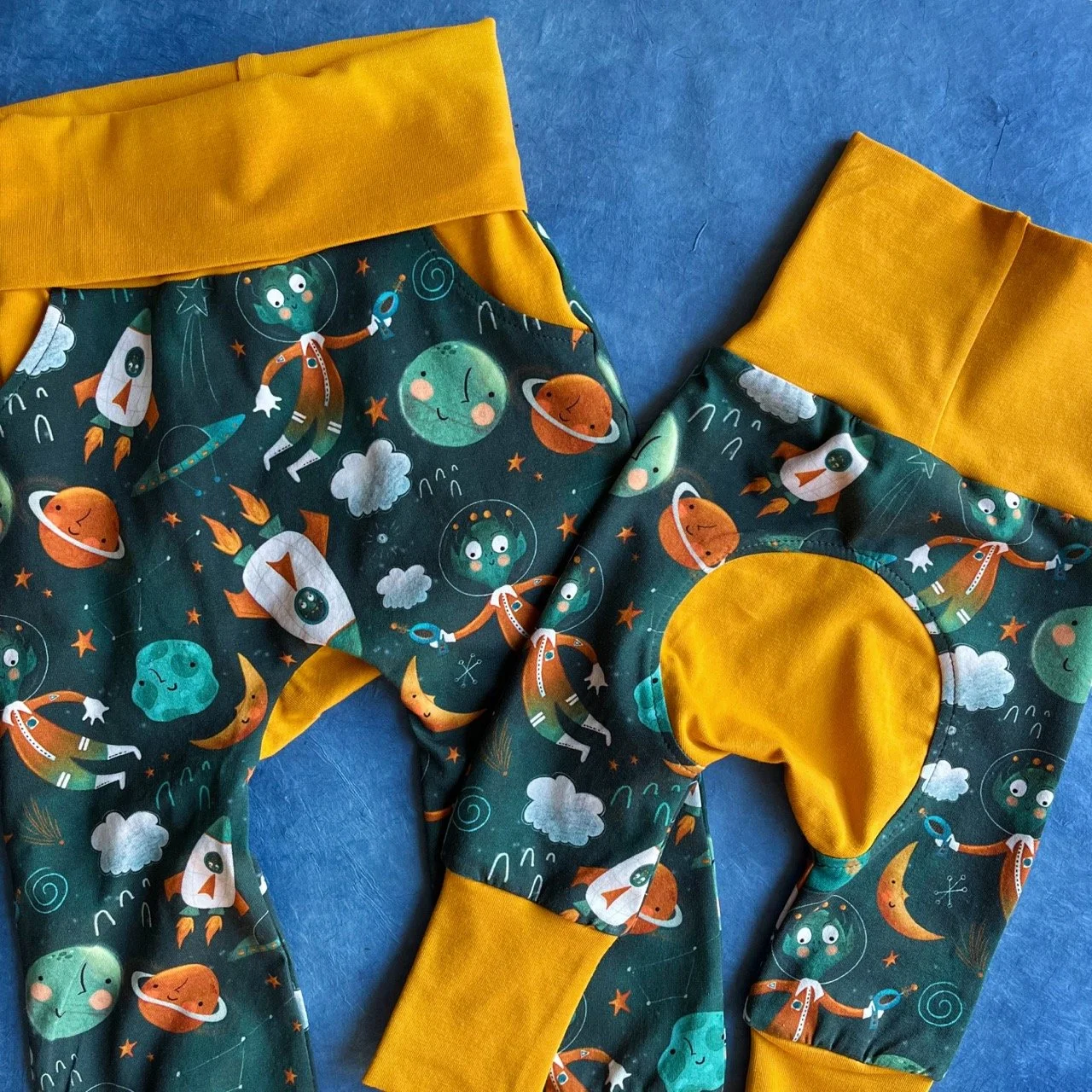Allyson Wendt (she/her) is the founder and sewist behind Pocketful of Why. She started sewing when she couldn’t find pants to fit over her kids’ cloth diapers, and has been learning new techniques and exploring fabrics and fits ever since. Grow pants are a great way to be more sustainable. They pair well with our Iron On patches for even longer life.